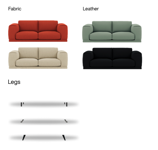 Our product configurator supports the popular stackable product image concept. But how do you get started? We will explain everything in this post. Identifying the layers Before we can create the images, we have to identify the product image layers. Your attributes are going to depend on the amount of layers your final product image has. Because every layer should have an attribute that controls the output for that layer. Say you have a sofa with a sofa color and legs type, then you have at least two attributes: sofa color and sofa leg type. Popular tools to create image layers for the configurator In order to properly create image layers you have to use the correct tools. A few popular tools are: Figma Adobe XD Sketch Adobe Illustrator Adobe Photoshop Creating the images